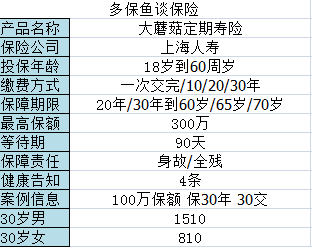 小编下面要说的这款寿险是来自上海人寿的大蘑菇定期寿险,关于这款产品的具体信息,小编也整理了一份图: