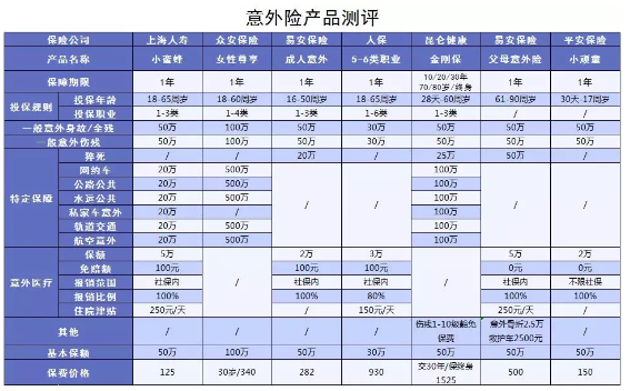 (优秀的意外险有很多,一些没有提到的意外险只是因为保障跟表格内重复了,所以不再赘述,有兴趣的朋友可以做进一步的了解)