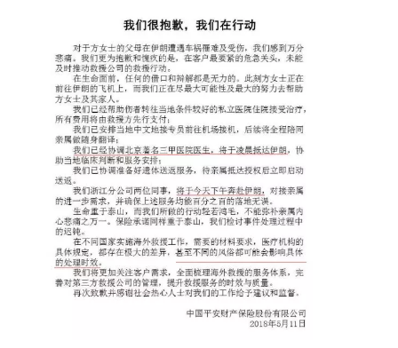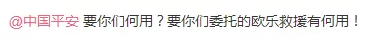 请问,杨女士尚在国内,她从何处得知远在伊朗的信息!在愤怒之下,杨女士发出这样的怒吼:“@中国平安 要你们何用?要你们委托的欧乐救援有何用!”