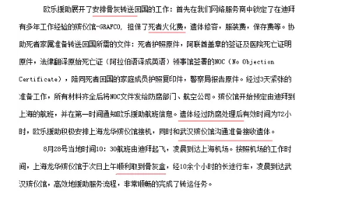 多保鱼整理一下:“安排了骨灰转送回国”“担保了死者火化费”,为什么后续还有“遗体经过防腐处理”,“安排殡仪馆接收遗体”,最后殡仪馆“顺利取到骨灰盒”。