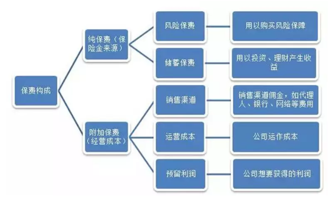 这个要从保费的构成说起了。首先我们看一下,自己辛辛苦苦交的保费都拿去干什么了: