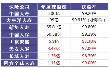 我们来看几个保险公司发布的理赔率:消费者申请理赔后,保险公司理赔的概率有多少。