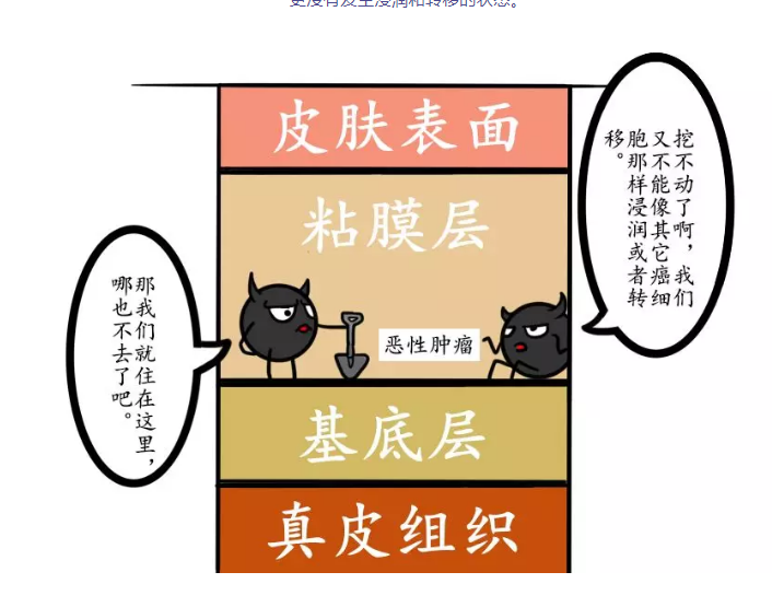 上皮的恶性肿瘤局限在了皮肤或粘膜内,