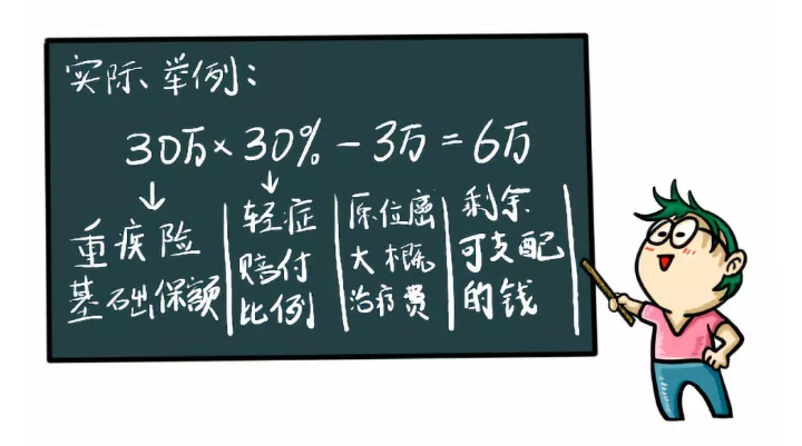 保额为30万,合同规定轻症赔付基础保额的30%。