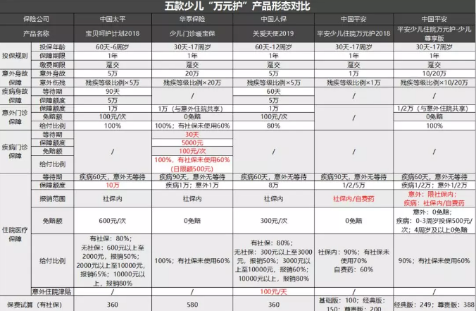 五款少儿“万元护”特色大盘点