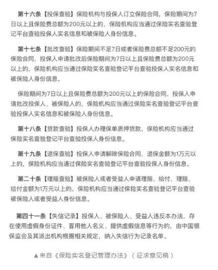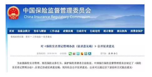 今年的6月4号,银保监会发布了《保险实名登记管理办法》的征求意见稿。