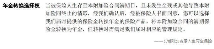 2)合同到期的情况下,将合同的保险金转换成年金产品,也就是把一次性领取的满期金换成每年领取的年金。