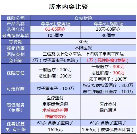 相较旗舰版来说,爸妈版的一般医疗和恶性肿瘤共享2万免赔额,报销门槛更高了。