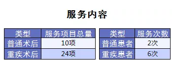 重疾绿通:远程问诊、专家门诊、住院安排、手术安排、住院探视、医后随访、中医理疗、营养方案、专家复诊。