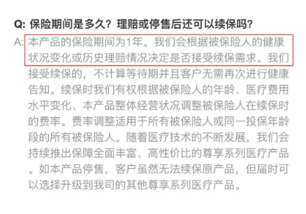 在尊享e生爸妈版投保页面的常见问题中,关于续保,官方有如下答复: