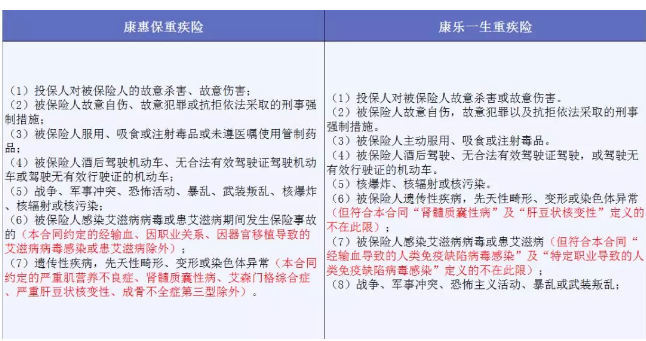 综上,康惠保重疾险的责任免除要优于康乐一生重疾险。