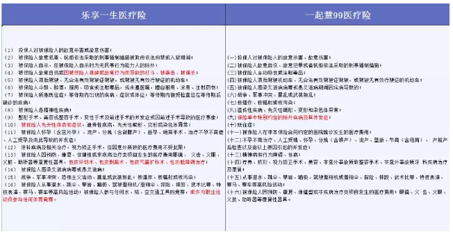 综上,在责任免除方面,一起慧99医疗险比乐享一生医疗险略有优势。