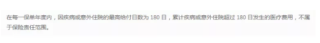 1年有365天,条款里只注明报销180天,反过来说,剩下185天的医疗住院费用就不在报销范围内了。