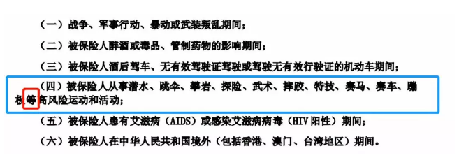 (当然问了也没啥用,因为“等”字意味着“无限”,只要能认定为高风险运动,都可以算免责)