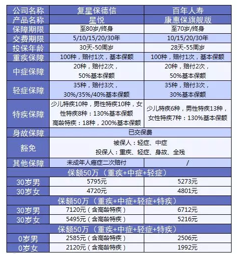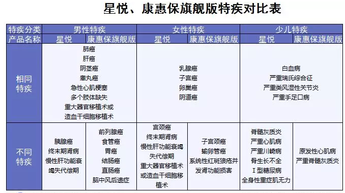 看得出来,虽然都有特定疾病额外赔付,但星悦和康惠保旗舰版还是有些差异的。