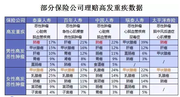 这是部分保险公司高发重疾的理赔数据,可以看得出: