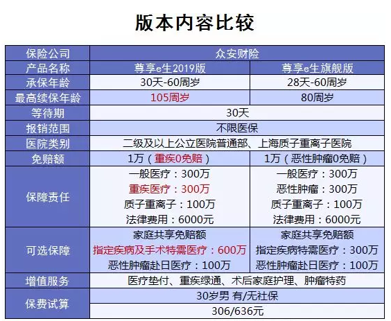 价格上,升级后的尊享e生2019版与旗舰版持平,甚至超值保障还在部分特定年龄降低了保费。