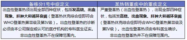 出血性登革热通常被划分为重疾,但是在备哆分1号里被降为了中症,赔付金额减少,理赔要求却没有降低。