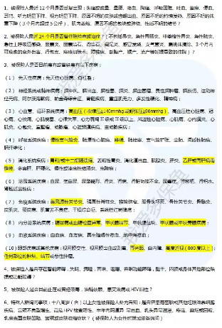 针对常见的比如:一年内是否有住院情况、高血压、哮喘、乙肝病毒携带、糖尿病、甲状腺结节等都有询问,比较严格。