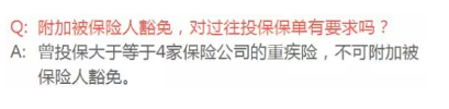 如果附加豁免或是选择优选版的话,除了7、8两条是一样对高危运动和保额的询问外,1-6条对健康的要求还是很高的:
