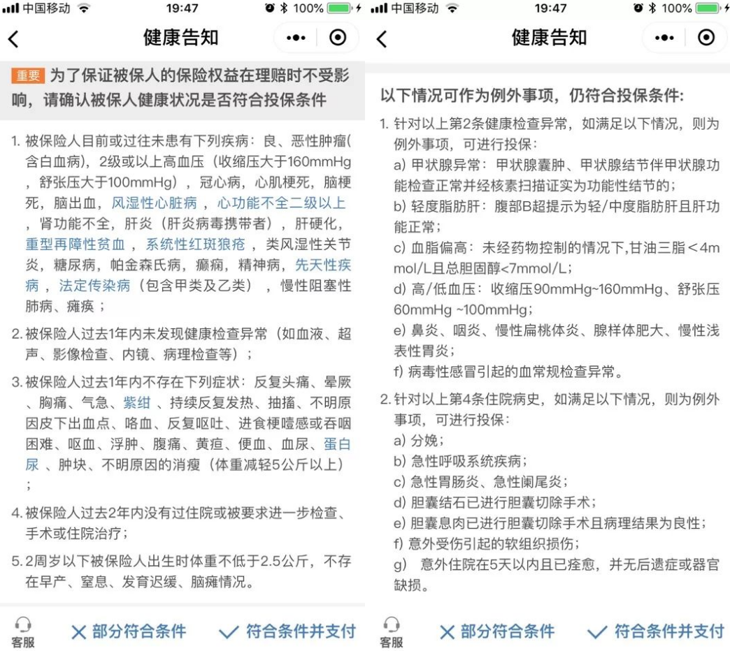 我们知道医疗保险是所有类型保险中最严格的健康告知要求。该产品的“健康告知 +智能核保”可以说与时俱进、比较人性化。