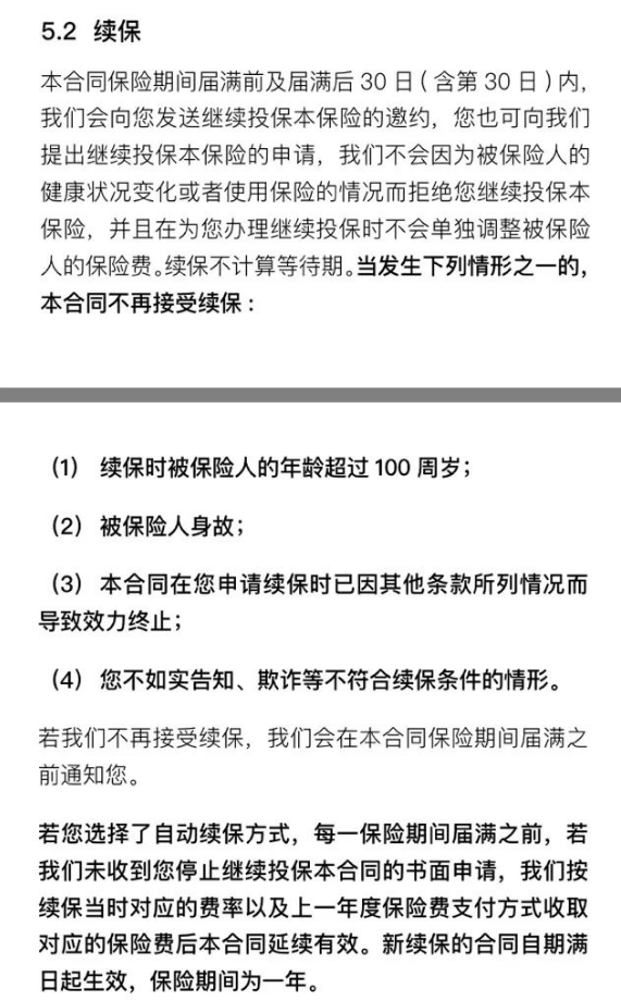 医疗保险的另一个关键问题是:续保。这个产品的续保条款是这样写的: