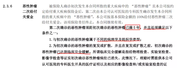 需要指出的是,再次诊断的“早期恶性肿瘤或恶性病变”在不同器官中可以是赔付。