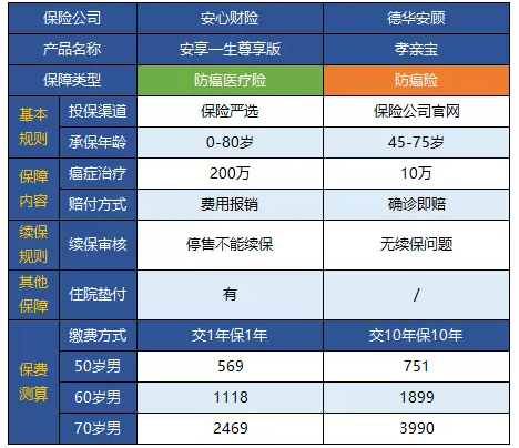 我还选择了两个以前推荐的防癌险、防癌医疗保险作比较,你可以直观地看一下: