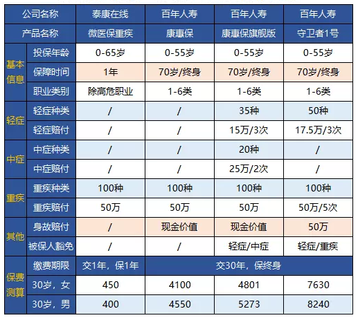 微医保重疾是一年产品,百年的三个产品可以是保障终身,这是几个产品之间的第二大差异。