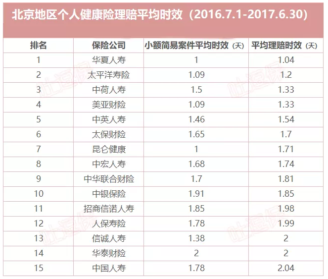 你可以看看,16〜17年北京区域健康保险平均值为理赔时效: