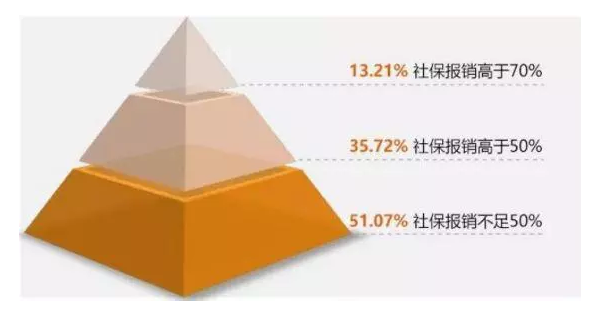1、超过一半的人社保报销比例小于50%,百万医疗险和重疾风险至关重要;