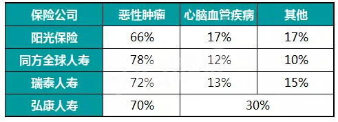 在所有重疾理赔中,癌症仍然位居榜首,占最高达70%,其次是心脑血管疾病。