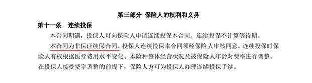 2、隔壁老王得了肺炎,愈合和理赔,但仍然有复发,需要续保,但在提交申请时被拒绝。为什么?因为这个医疗保险不保证续保,让我们来看看大多数医疗保险的续保条款内容:如果老王去购买其他医疗保险,那么还有90天的等待期。