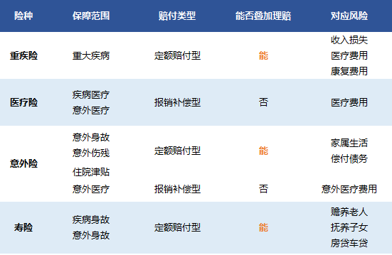 常见的如重大疾病保险、定期寿险等,即使多家投保,出险后也可以同时申请。