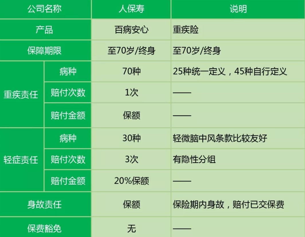 对于第一个:我相信很多人已经熟悉它了。本质是重大疾病保险+终身寿险。换句话说,在这个产品结构中,发生死亡并不是一种严重的疾病保险赔付的你,而是终身寿险赔付的你。