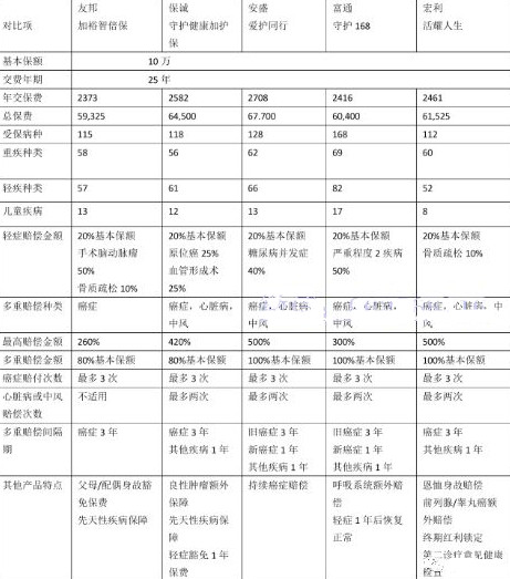看看这五款香港危重病明星产品的对比分析,希望对大家有所帮助。下表列出了上述五种产品的主要理赔产品信息,仅供参考。
