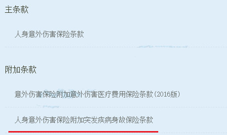 突发疾病保障作为额外风险存在,例如,上面的综合意外险,猝死保障作为额外的风险存在。