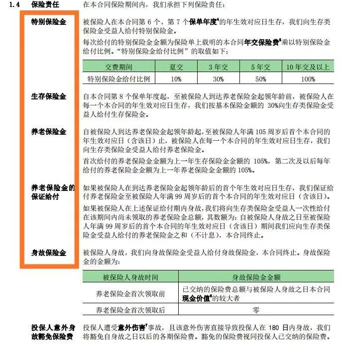 例如,泰康目前正在发售鑫福年金保险,主要保险的保险责任如下:
