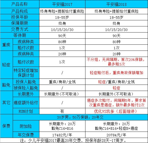 2、新增保险人/被保险人的轻症豁免,被保险人的轻症豁免是旧版平安的较大缺陷,因为主流重大疾病保险有轻度豁免,新版平安福可以被视为一种补救措施。