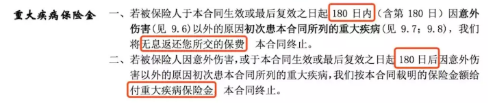 简单地说,在您购买保险180天后,如果您生病,您将会赔钱;如果您在180天内生病,返还保单持有人通常为保险费用,保险合同终止。