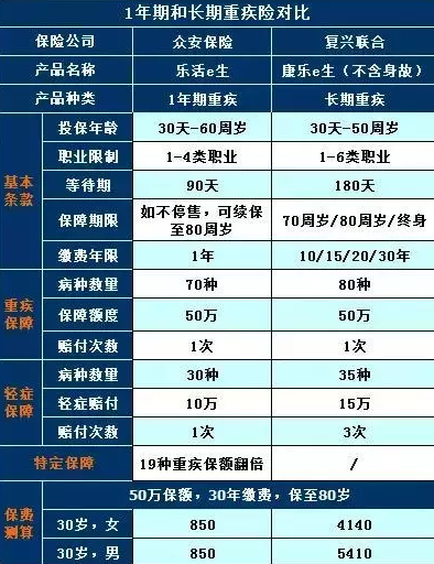 为了让每个人都能更容易地做出决定,我们选择了两个典型的产品比较来说明一年期和长期重大疾病保险的优缺点。