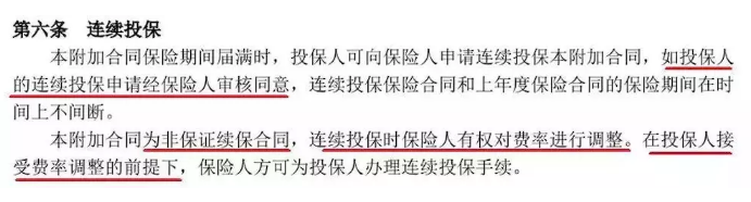 换句话说,这个产品不保证续保,费率也可以调整。