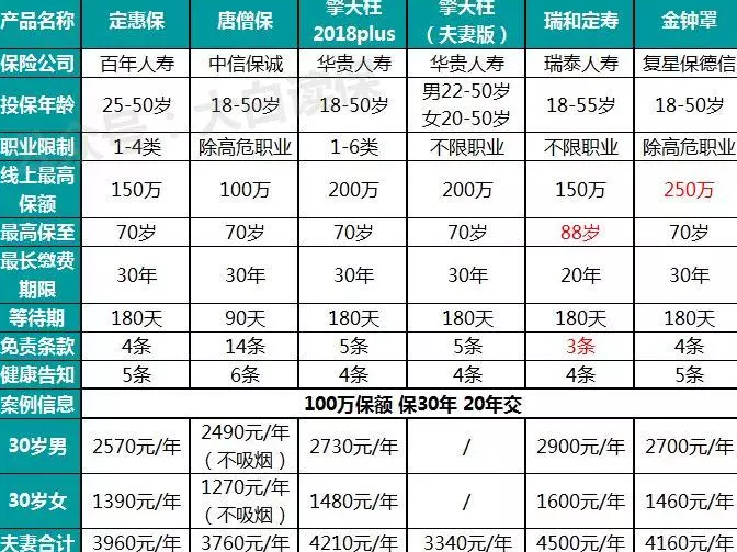 其他固定寿命产品基本上提供60年的选择,保障期间更灵活。
