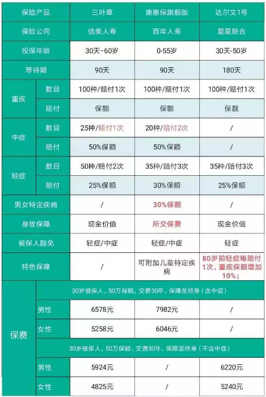 信美三叶草,康惠保旗舰版,达尔文1号3款重疾险全面测评