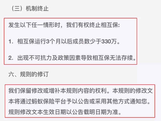 相互保在中国是新的,并不成熟。保险公司和相关部门没有足够的经验。如果未来相关国家有关部门认为产品过度创新,扰乱市场秩序等,也可能导致产品终止。