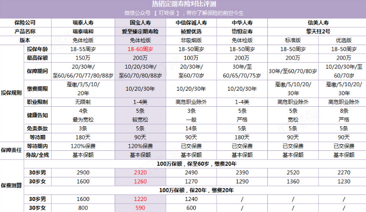为了更直观,我挑选了几个市场上比较有代表性的定期寿险产品来对比。