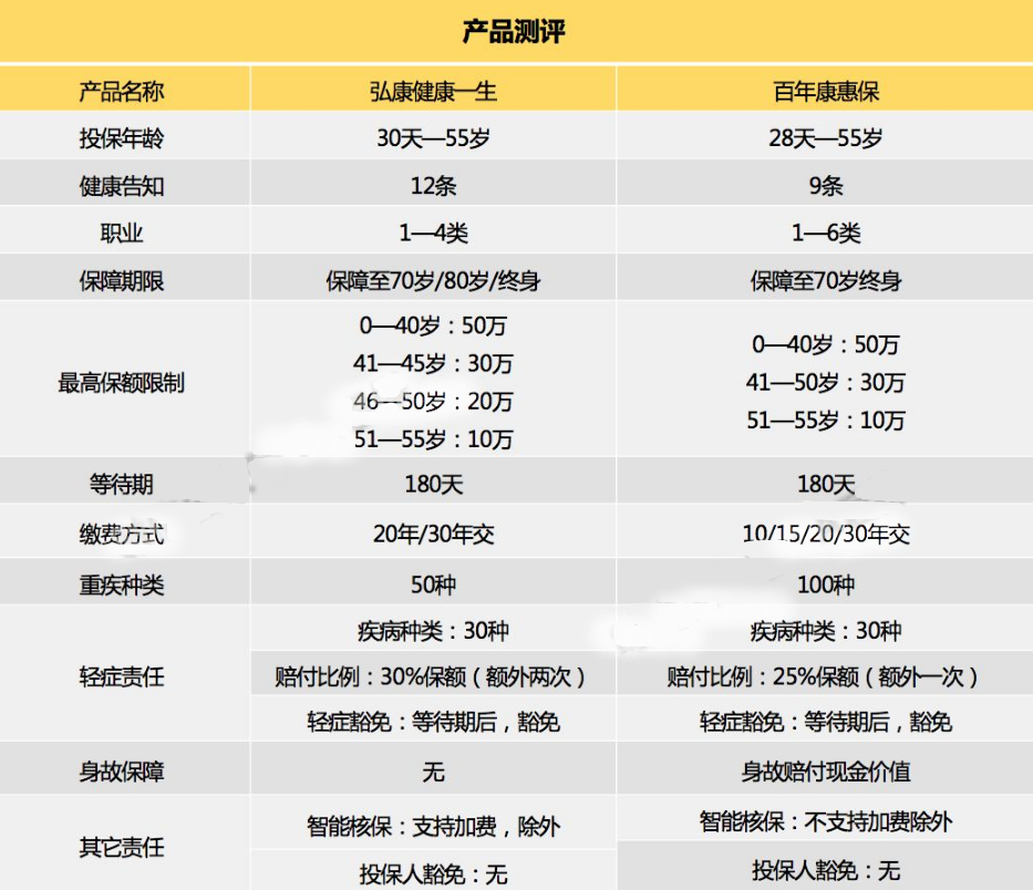 百年康惠保和弘康健康一生两款重疾险哪个更好