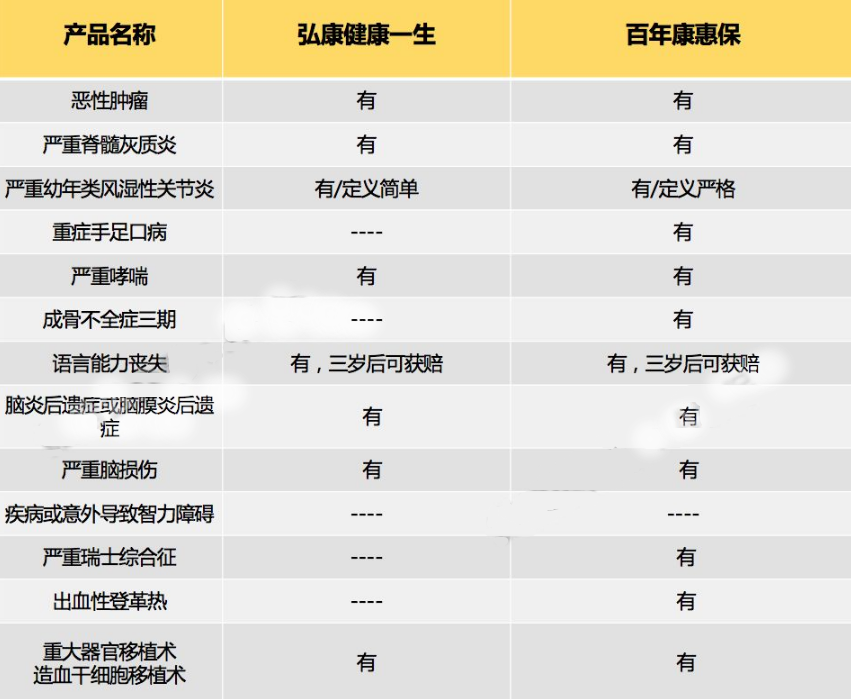 但是,如果我们看一个特定的组:例如,孩子,这两个产品的儿童特定重疾保障覆盖范围是什么?