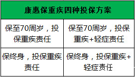 康惠保重大疾病保险提供两个保险期限长达70岁和终身,因此我们可以在选择产品时确保以下四种方式。