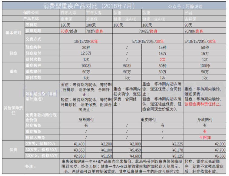 1、三个产品是轻症、重症责任,严重的是赔付一次,除了弘康轻症2次赔付,另外两个是轻症一次赔付。